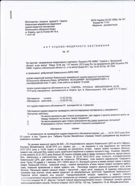 око, пошкодив спину, наніс інші ушкодження. Медики констатували в Руслана побої