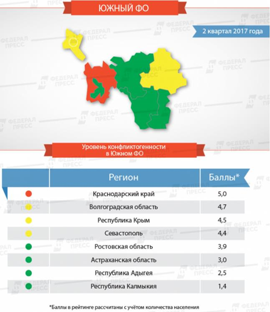 конфликтогенности в разрезе федеральных округов? С 2017 года Краснодарский край