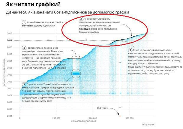 Медведчука уже не в первый раз обвиняют в использовании т.н. ботов. Но ЛБ и Тексты публикуют график, который полностью опровергает их выводы об искусственном росте числа подписчиков политика.