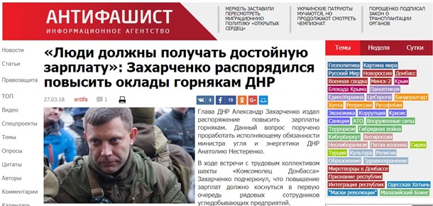 Очередную новость вчера обнародовал глава ДНР Александр Захарченко, заявив, что шахтеры вскоре будут получать по 35-45 тысяч рублей.