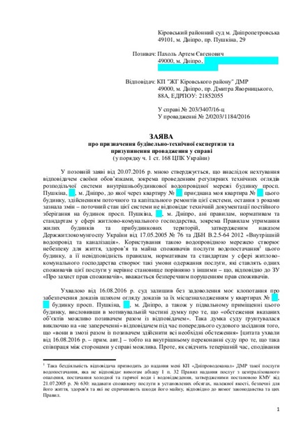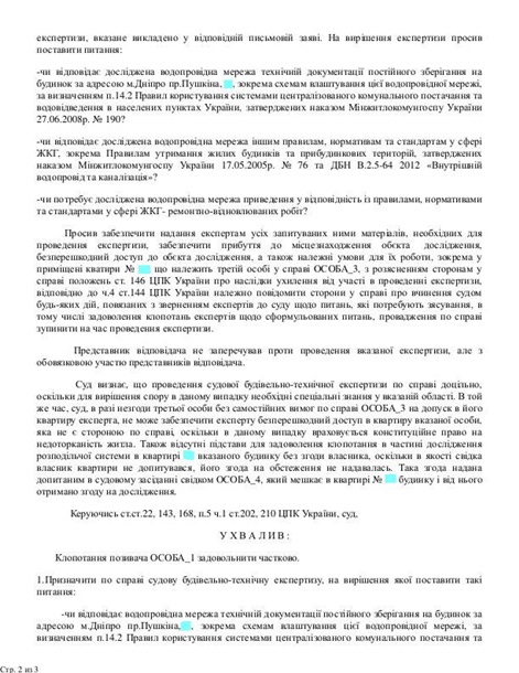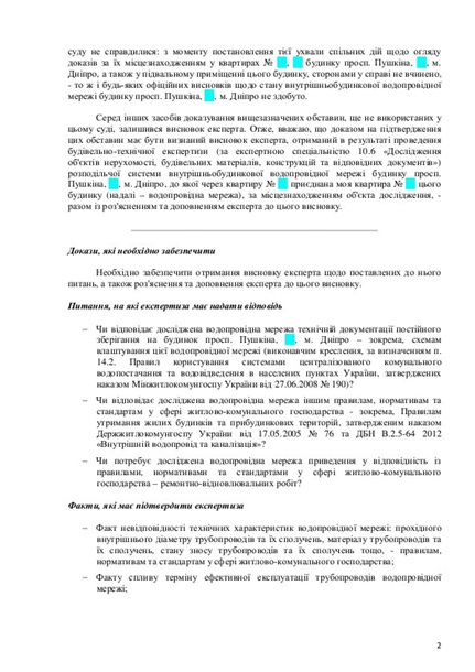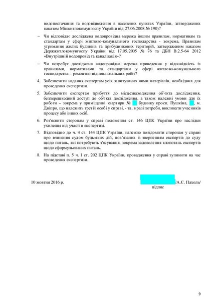 експертизи із зазначенням неподання експерту схем влаштування водопровідної