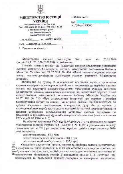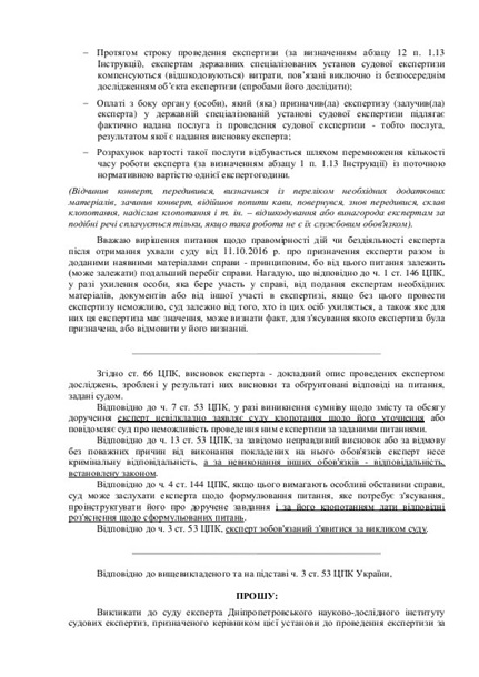 про виклик до суду експерта Дніпропетровського науково-дослідного інституту
