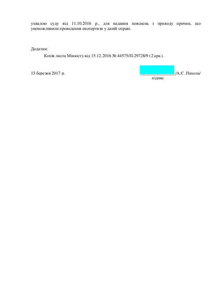 судових експертиз для надання пояснень з приводу причин, що унеможливили