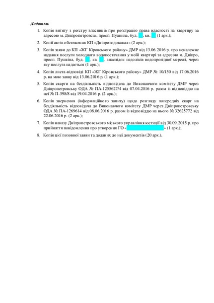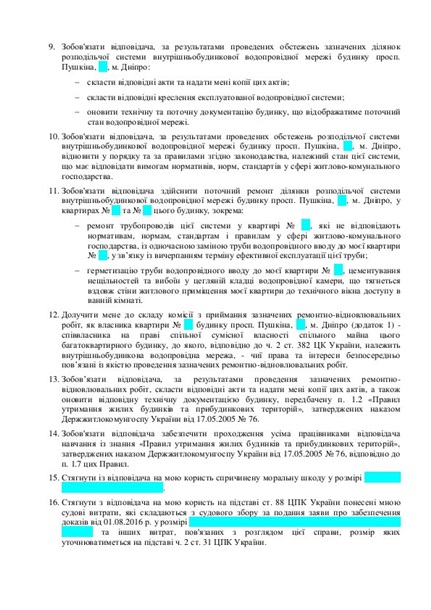 водопровідної мережі будинку просп. Пушкіна, ***, м. Дніпро, що з’єднують мою квартиру № *** через квартиру № *** цього будинку із цією