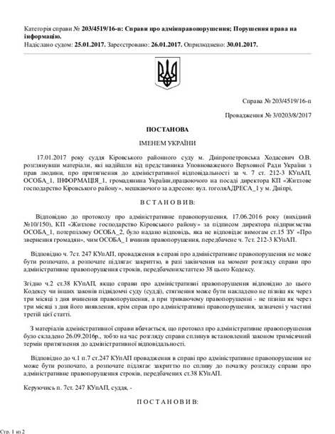 подякувати судді Ходасевич О.В. (справа № 203/4519/16-п): суддя, принаймні, визнала Бухало В.В. винним