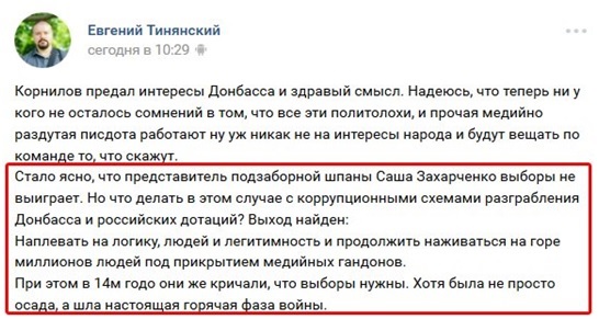 Захарченко, который, пытается спасти свой пост на фоне разграбления Донбасса. “Стало ясно, что представитель подзаборной