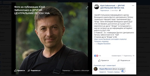 На сайті лідера бойового крила «Бубеністів» Юрія Заболотного з’явилась цікава