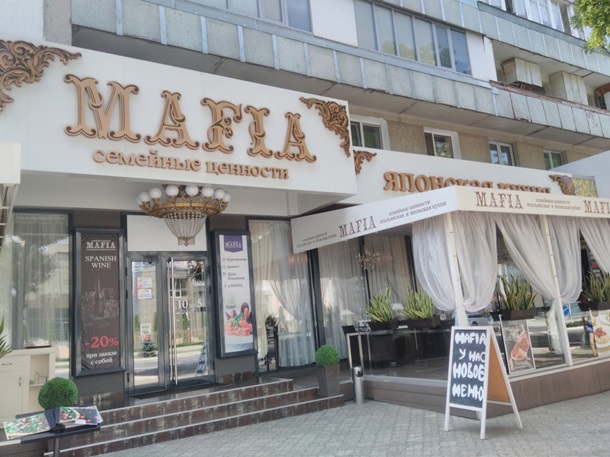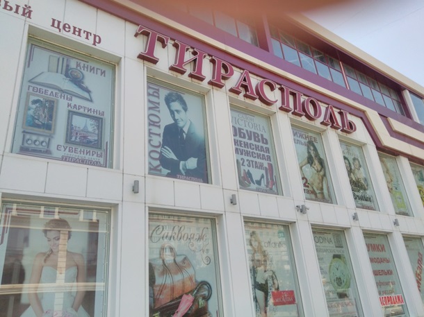 Дальше я пошел пешком по центральной улице Тирасполя в направлении к главному парку, рынку памятникам Суворову и Ленину. По дороге резануло глаз заведение, которое есть по многим городам Украины — это кафе Мафия. Местные жители сказали, что это одно из самых крутых и дорогих заведений у них. В магазинах много украинской продукции — масло, конфеты, печенье, напитки.