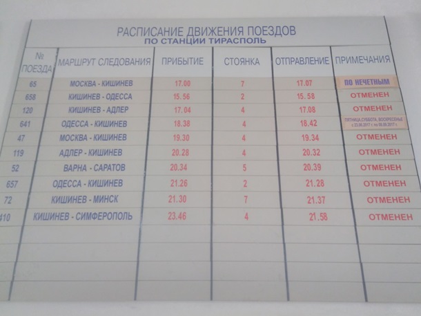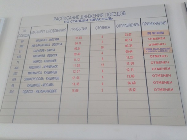 Сам вокзал во время моего прихода был пуст. Спустя минут 15 начали съезжаться таксисты. Подъехало машин 15. Оказалось, что прибывает поезд. Он ходит там раз в сутки Москва-Кишинев. Когда поезд уехал, вокзал опустел и там остались только его работники.