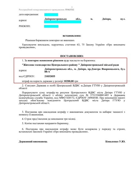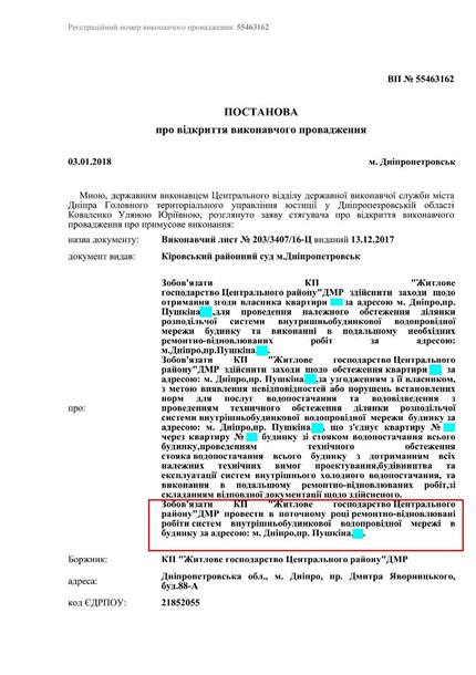 суда г. Днепропетровска, согласно которому Кировский ЖЭК обязан «провести в
