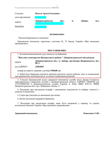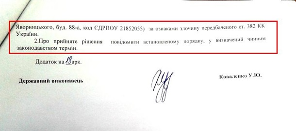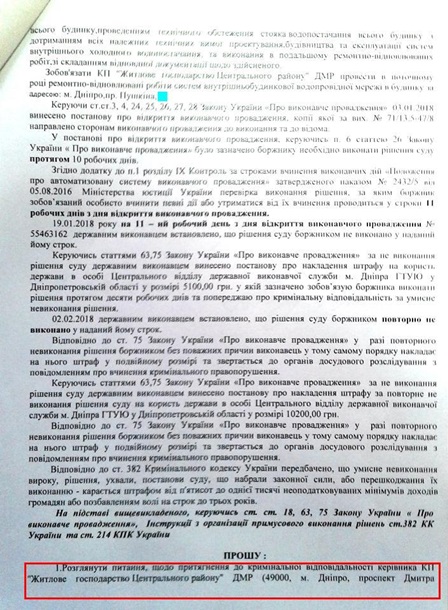 ЗУ «Про виконавче провадження», направив в Днепровское отделение полиции ГУНП