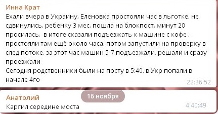«…Сегодня родственники были на посту в Еленовке в 5:40. В Украину попали в начале 16-го»…