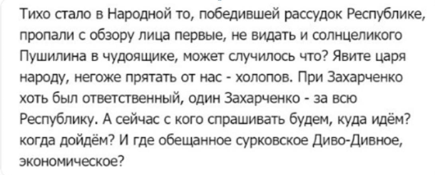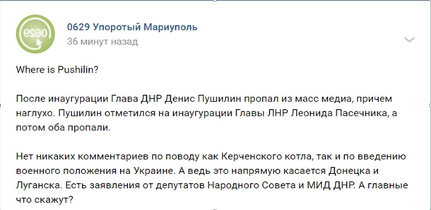 Пушилин, после инаугурации он пропал из масс медиа, причем наглухо, — задаются