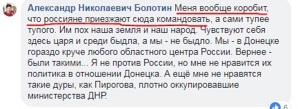 Александр Болотин: «Меня вообще коробит, что россияне приезжают сюда командовать, а сами глупее тупого. Чувствуют здесь себя царями среди быдла. Мы в Донецке гораздо круче любого областного центра России. Вернее, были такими…»