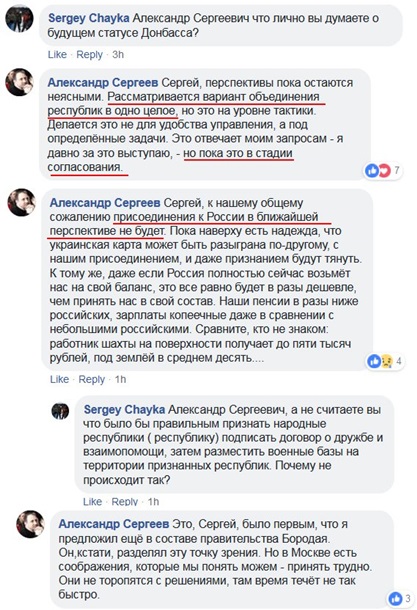 При этом, собственно говоря, их мнением Кремль вообще не интересуется. Что известные сепаратисты и констатируют в соцсетях (смотри скрины).