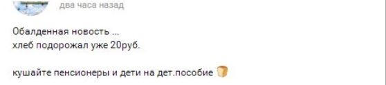 батон стоил 14 рублей, а сейчас цена возросла до 20 рублей (8,5 грн.). Также, в