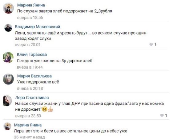 соцсетях участилось негодование жителей «ДНР», которые обеспокоены скачком цен