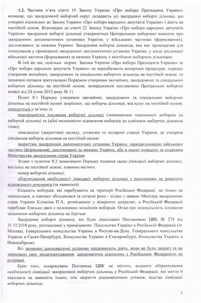 Во-вторых, заграничный избирательный округ включает в себя все избирательные участки в других странах, действующие на постоянной основе при дипломатических учреждениях Украины. На территории России, несмотря на пятилетние мантры о войне, ни одно украинское дипучреждение закрыто не было. "Ликвидированные" участки находятся в здании нашего главного посольства в Москва, в Генконсульствах Украины в Ростове-на-Дону и Санкт-Петербурге, в консульствах Украины в Екатеринбурге и Новосибирске. Пока все указанные учреждения работают, избирательные участки находятся в них законно, оправданно и целесообразно, ведь по словам того же Климкина, в Российской Федерации находится около 2,5 миллионов избирателей.