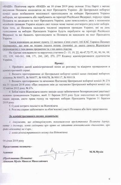 Мы требуем от суда отменить незаконное решение и обязать ответчика обеспечить возможность каждому гражданину Украины, который 31 марта 2019 будет находиться на территории других государств, проголосовать на очередных выборах президента. Нужно не сокращать количество участков - нужно открыть максимальное количество новых, гарантировав права всех 9 миллионов украинцев за рубежом сказать все, что они думают о Порошенко и прочей камарилье. Призываем все политические партии, заинтересованные в сохранении Украины как правового государства, присоединиться к нам в этом требовании.