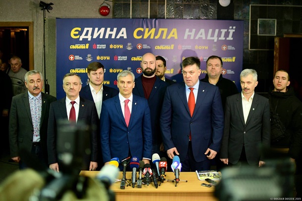 Это Юлия Тимошенко (Батькивщина), Руслан Кошулинский (ВО «Свобода»), Владимир Зеленский («Слуга народа»), Александр Вилкул («Оппозиционный блок»), Евгений Мураев (НАШИ) и Олег Ляшко (Радикальная партия).