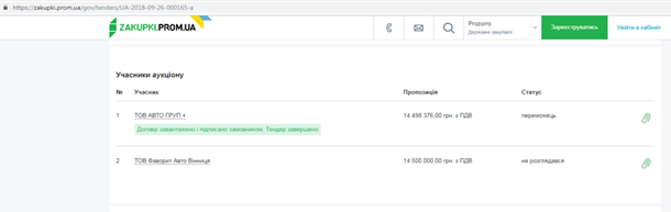 которой на торгах было ООО «Фаворит Авто» из Винницы.