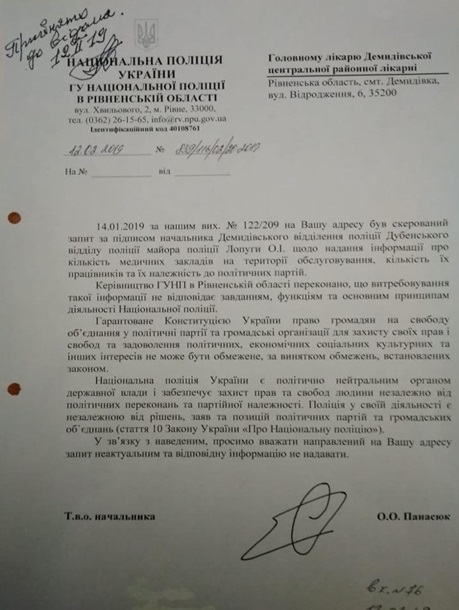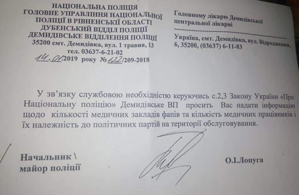 лікарю Демидівської центральної лікарні листа з проханням вважати такий запит