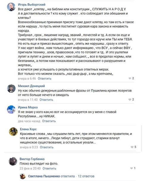 пользователей соцсетей, реагирующие на циничные слова главаря о скорби за погибшими.