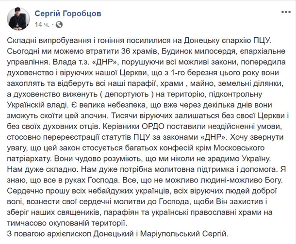 архиепископ. — Власть так называемой „ДНР“, нарушая все возможные законы,