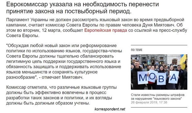Закон про мову ні на що не впливає, а лише піарить «патріотизм» правлячої верхівки. Це і є єдиною та головною метою президента та його фракції, які репетуватимуть найголосніше від усіх. І цей брудний політичний піар є очевидним для Європи. Тому єврокомісар Ради Європи з прав людини зробила, що розгляд мовного питання потрібно відкласти до закінчення виборів президента.