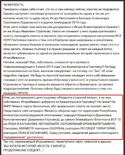 подразделений НВФ Гиркиным, так называемый экс-«начальник разведки» «ДНР»