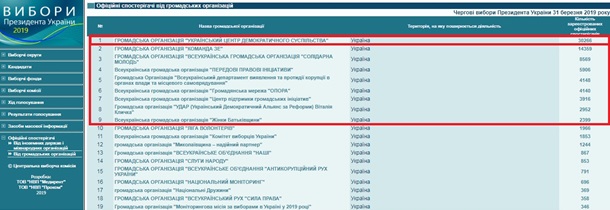 Україні. Серед організацій, які зареєстрували офіційних спостерігачів,