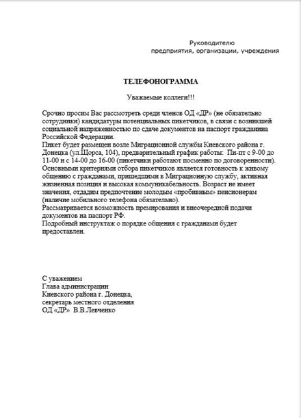 предприятия пришла телеграмма, гласящая необходимость составления списков лиц,