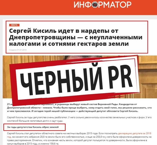 Так, аналитики зафиксировали, что на ресурсах портала Информатор (Днепр, Никополь) массированно выходят агитационные материалы про первого зам.председателя Днепр ОГА Олега Кужмана, который баллотируется в парламент в округе №40 (Марганец, Каменское (часть) + Томаковский, Криничанский, Солонянский районы).