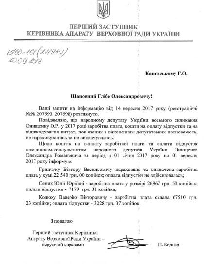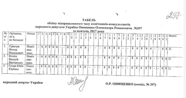цілий місяць, а Онищенко нараховував йому за це заробітню платню. І це дуже