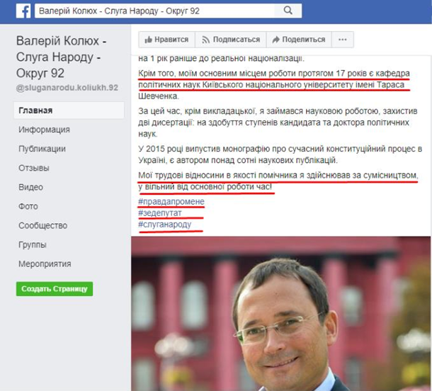 імені Тараса Шевченка. І сам Валерій Вікторович заявляє на своїй сторінці в ФБ,