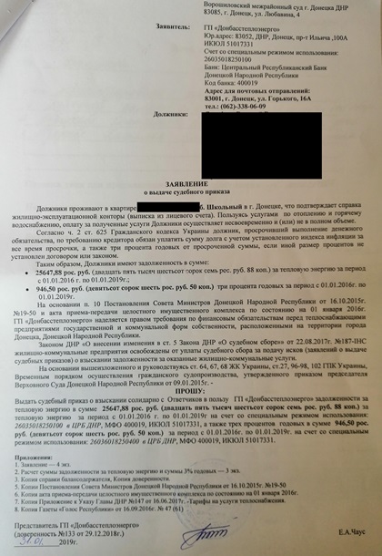этом документе на пользу “Донбасстеплоэнерго” семье нужно заплатить задолженность за тепловую энергию в