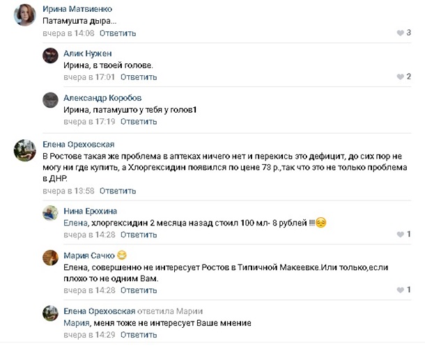 негодования. Например, один мужчина пишет, что в аптеках оккупированных Донецка