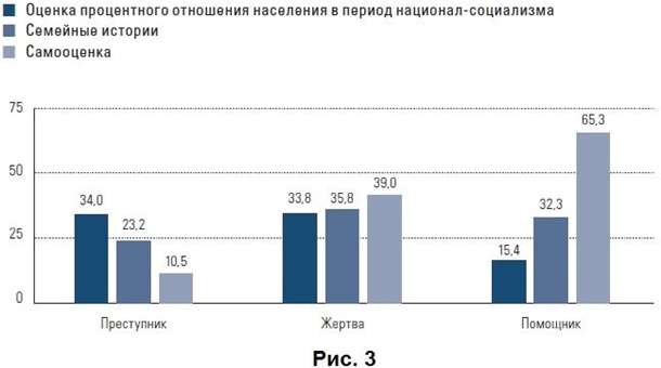 Кроме того, моделируя своё собственное гипотетическое поведение в прошлом, большинство нынешних граждан Германии склонны видеть себя в первую очередь в роли жертв или их помощников, но не нацистских преступников, чему немало способствуют явно искажённые семейные истории о предках, родственниках и их действиях во времена гитлеровской диктатуры.