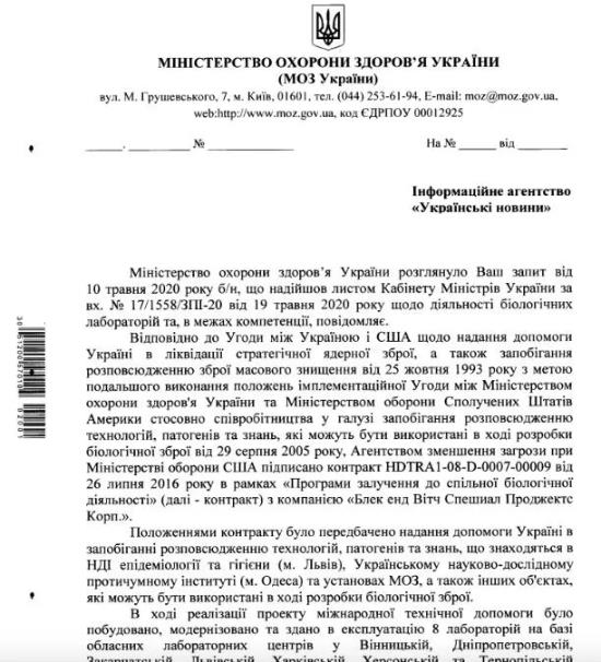 лабораторий в Украине. Руководство страны по только им известным причинам