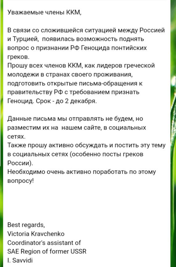 звернення до уряду Росії з вимогою визнати геноцид греків. Дивним було те, що