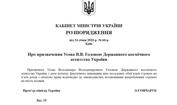 24 січня 2020 року тодішній прем’єр-міністр Гончарук підписав розпорядження про призначення головою