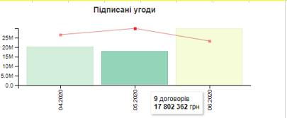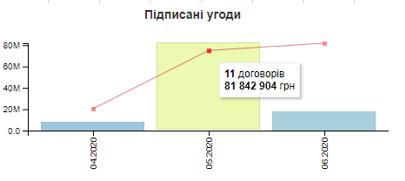 в травні 2020 року, було заключено 11 договорів на загальну суму майже 82 млн.