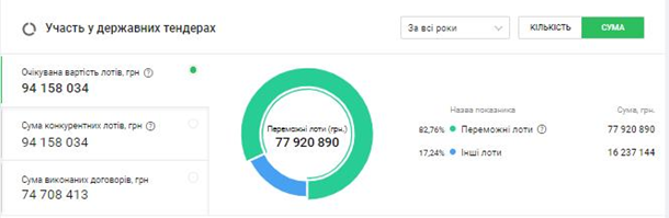 переможцем в закупівлях на 138 млн. гривень. В сфері державних закупівель