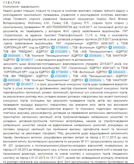 відповідальні особи філії «ЦЕНТР ЗАБЕЗПЕЧЕННЯ ВИРОБНИЦТВА» АТ «УКРАЇНСЬКА