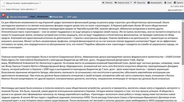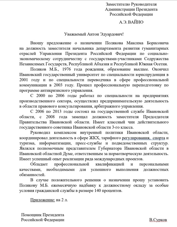 Борис Рапопорт отримує лист від свого колеги в сурковському управлінні АП