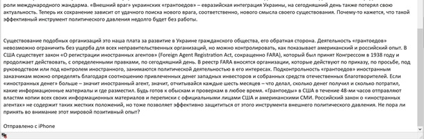 Олег Царьов публікує від свого імені текст, увага(!), про іноземний вплив на