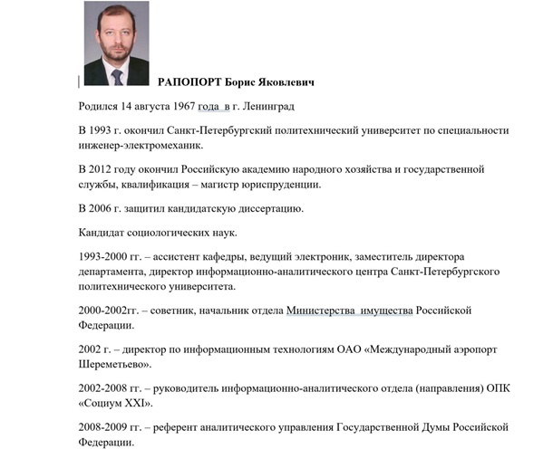 досліджуваному нами дампі й анкетні дані самого Рапопорта.