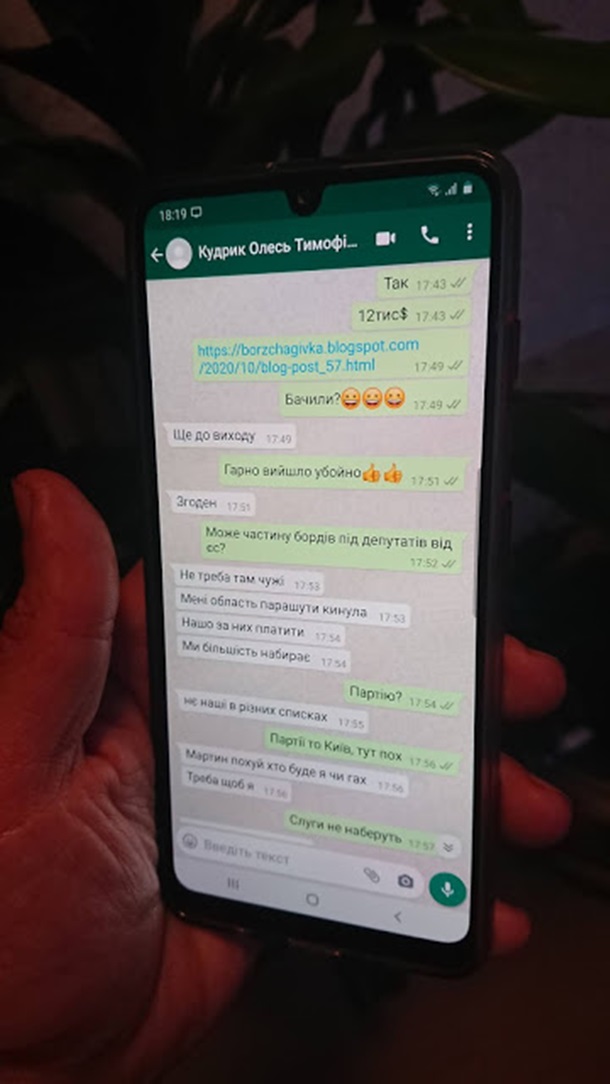 А зараз я хотіла би вибачитися перед прихильниками Європейської Солідарності та її лідера. Так як те, що ми бачили не тільки шокує, але і вкрай ганебне. Попри побутову ненормативну лексику, Кудрик не тільки принизливо висловлюється про лідера ЄС, бідкається на відсутність коштів від партії на виборчу компанію, та ще й дає команду своєму посіпаці Дудці не зачіпати "зелених".