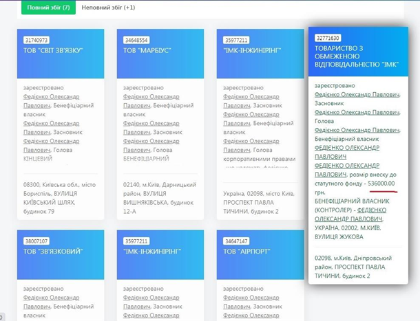 Сам народний депутат від «Слуг народу» Олександр Федієнко є заступником голови Комітету з питань цифрової трансформації, та одна з його компаній Industrial Management Consulting http://www.imc.org.ua/index2.php заснована з метою виведення на Український ринок цілого ряду традиційних і нових телекомунікаційних сервісів, спрямованих на задоволення зростаючих потреб, як корпоративних, так і приватних клієнтів. Компанія створена, як системний інтегратор і первинний телекомунікаційний оператор нового покоління, з метою поставки бездротових рішень будь-якого масштабу "під ключ" з подальшим наданням повного комплексу телекомунікаційних послуг.