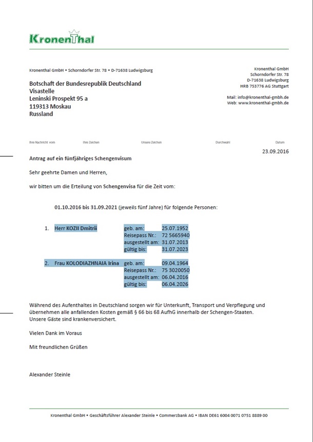 2016 года Штайнле обращается в посольство ФРГ в Москве и ходатайствует о